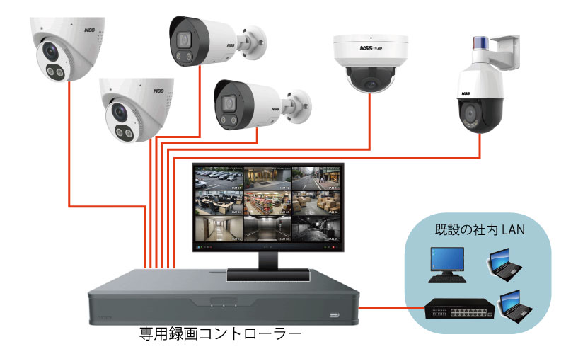 既設のLAN配線を利用し、今お使いのパソコンから自在に監視/録画を可能にします。